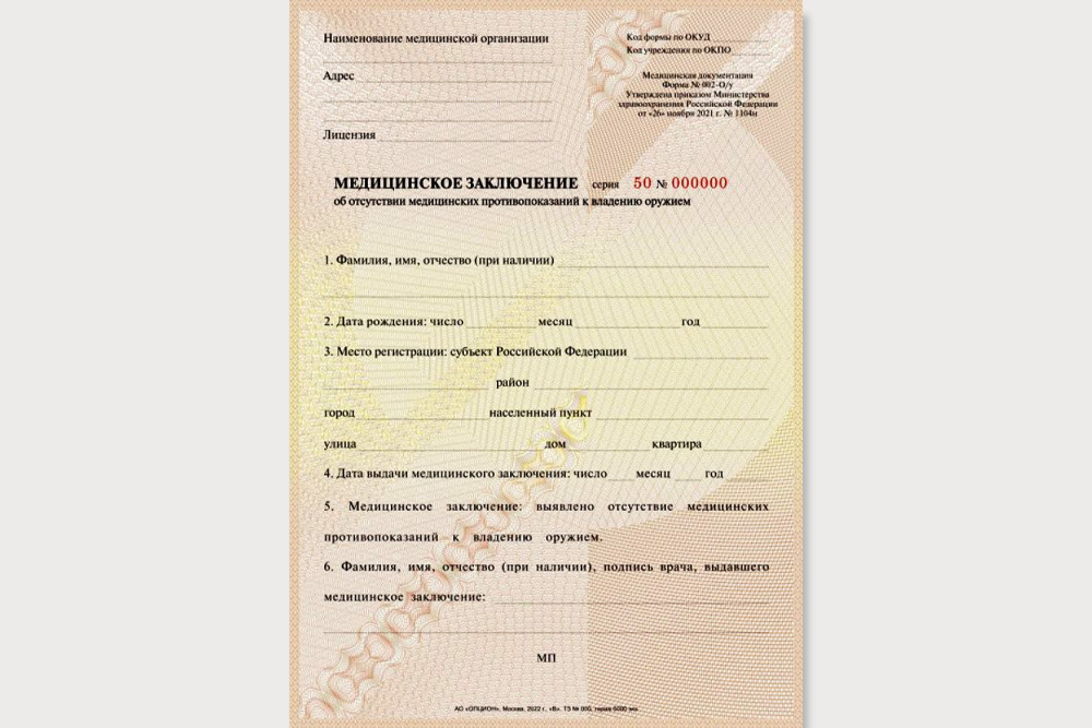Заказ таких бланков могут оформить только медицинские организации, имеющие действующую лицензию на проведение медицинского освидетельствования граждан для получения лицензии на хранение и ношение оружия.