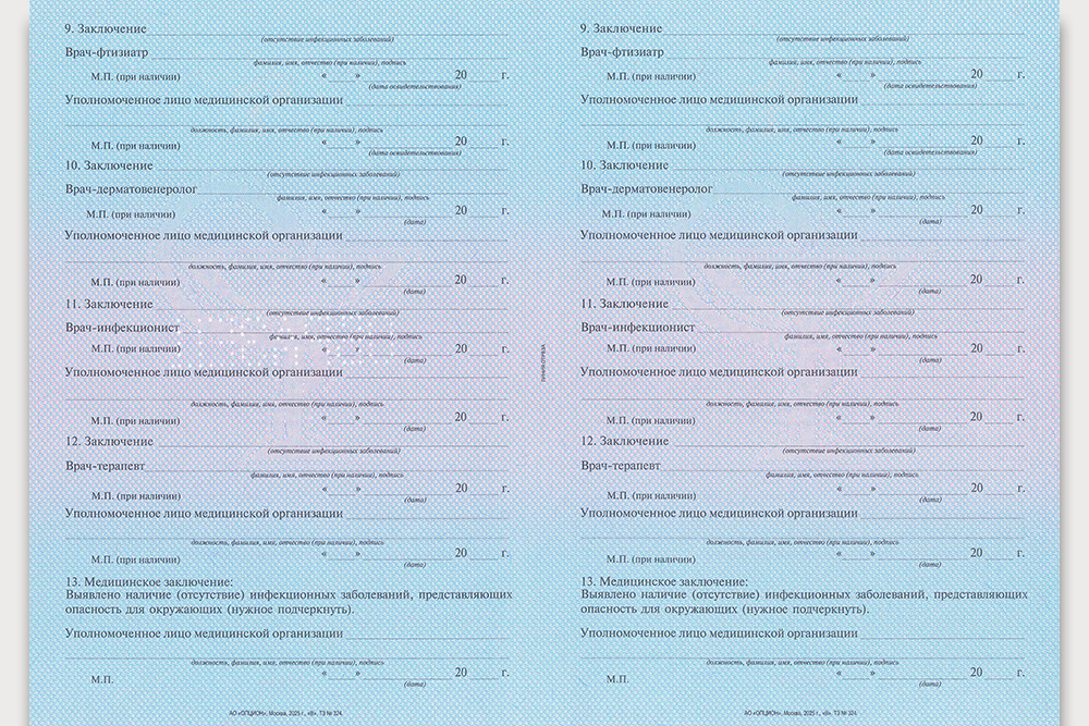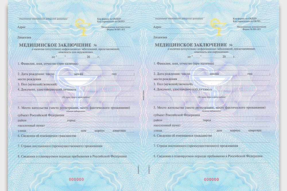 Изготовление формы № 001-ИЗ “Медицинское заключение о наличии (об отсутствии) инфекционных заболеваний, представляющих опасность для окружающих” выполняется в формате защищённой полиграфической продукции. Бланки производятся на специализированной бумаге и имеют многоуровневую защиту, включая водяные знаки, микротекст и серийную нумерацию. Стандарты и требования к оформлению определены нормативными актами Минздрава РФ и государственными стандартами.