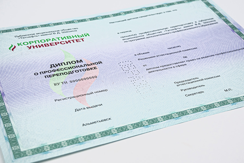 Полиграфическая защита обеспечивает юридическую достоверность диплома, свидетельства или удостоверения о прохождении обучения. Они затрудняют подделку или несанкционированное изменение документа, позволяют быстро определить оригинальность образца.